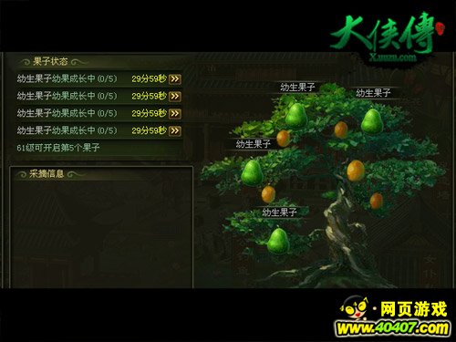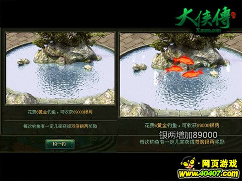 休闲宅院 宅院作为《大侠传》中的首创系统,吸纳了社区游戏的许多经典设计,在你的后院之中,可以种花、养草、钓鱼……丰富多彩的小游戏、多重轻武侠休闲玩法,让你在刀光剑影之外能够寻找到另一番乐趣!也由此将《大侠传》区别于如今市面上的许多强调PK、升级、推王等内容的武侠页游游戏,成为独树一帜的“轻武侠”页游。 ![]() 【宅院界面】