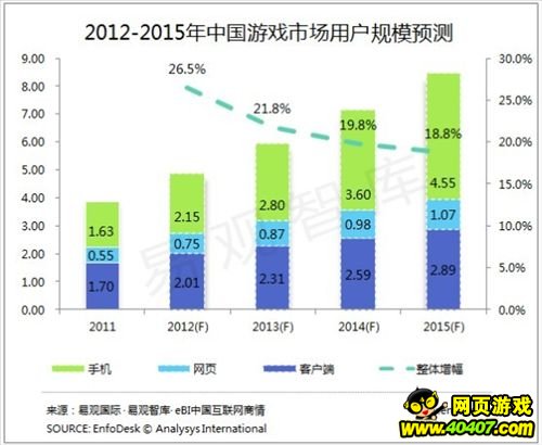 在对于网页游戏市场的预测中,从2013-2015年中国网页游戏市场的规模将从110亿元人民币向170亿元逐年递增,但是随着市场规模的逐渐增大,市场的增长速度将发生变化,可能从近40%的高增长率逐渐下降至20%左右。 整体规模在不断壮大,但是增长幅度在相应的放缓。除了增长速度的放缓之外,网页游戏市场的用户规模在2015年预计能突破1亿大关,而增长幅度将从16%左右,逐渐放缓至10%的年增长率。 随着后续网页游戏的发展,产品推广成本的飞速增长,导致游戏到达玩家的成本过高,利润降低,而且对于渠道和平台的过多的依赖,再次导致网页游戏的利润下滑,可能会引发行业内的无序竞争。只是值得更多网页游戏开发企业和运营平台所关注的。 做大做精必然增加游戏研发的成本和周期,推广的费用的不断提升也阻碍着网页游戏市场的发展。未来网页游戏市场在激烈的竞争中将面临不断地洗牌,逐渐提升网页游戏的水平。 2013年页游市场的规模将高达近百亿人民币。伴随着新运营平台的火速崛起,网页游戏作品的不断增多,曾经令人羡慕的网页游戏掘金之旅面临着一道道的难题。无论是游戏开发商、运营商等都希望从中分到一杯羹,巩固自身的江湖地位。未来网页游戏江湖竞争将更加激烈,谁主沉浮实难料定。 小编吐槽:页游领域的飞速发展,这是老生常谈了,而近日举行的游戏产业年会的黑红蓝论坛上,各位页游大佬明确表示,页游不再是像过去的粗制滥造,门槛也没有过去那么低。在日趋精品化,研发成本堪比大型端游的页游领域,大中小博弈日趋白热化,是巩固地位,是停滞甚至后退,小编拭目以待,请各位在激烈拼杀的厂商,平台,拿出你们的品牌竞争力。 |