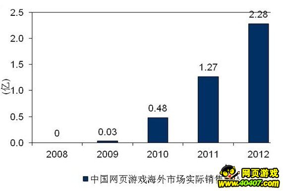【数据分析】 纵观10年来,中国游戏产业发展非常迅猛,原创网络游戏的发展也令人叹为观止。截止至2012年,中国原创网络游戏市场实际销售收入368.1亿元人民币,比2011年增长了35.6%,占中国网络游戏市场实际销售收入的64.6%。中国原创网络游戏中海外出口风头正劲,出口份额持续年年增长,尤其是在2008-2012年的4年中,每年的增幅都超过五成。2012年中国游戏产业网络游戏海外出口实际销售额甚至高达5.7亿美元。 最近发布的《2012年中国游戏产业海外市场报告》(摘要版)显示:2012年,中国原创网络游戏海外出口持续增长,总计有40家中国网络游戏企业原创的177款国产原创网络游戏进入海外市场,海外出口实际销售收入为5.7亿美元。较上年增长57.5%。 这几年随着国内网页游戏市场的逐渐饱和,更多的开发商开始瞄准了海外地区。2012年,网页游戏海外出口产品数量增长迅速,首先跟网页游戏本身的特殊优势和各大地区的消费需求是密不可分的。以东南亚的越南地区为例,由于国家的政策因素,对于客户端游戏市场的监管力度非常之大,导致客户端游戏进驻越南国内市场明显受阻,相反对于网页游戏的政策却相对宽松。 再看2012年中国原创网页游戏海外出口实际销售收入,之前提到过中国原创网络游戏海外出口实际销售总收入为5.7亿美元,而中国原创网页游戏海外出口实际销售收入为2.28亿美元,仅次于客户端网络游戏3.31美亿元位居第二。而涨幅网络游戏较上年增长79.5%,客户端网络游戏仅为46.5%。 ![]() 从海外运营模式而言,实现自建公司、独立运营的国内领先的网络游戏企业也不在少数。早已为玩家熟知的趣游,全球分支机构高达25个,另外一些新兴页游企业也在北美、南美、欧洲、日本、中国台湾、马来西亚和韩国设立了海外运营企业。总体而言,国内领先的网页游戏企业都在纷纷布局海外市场,呈现出逐年递增的良好态势。